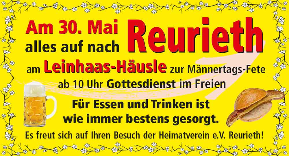 Häselrieth. Es ist zu einer schönen Tradition geworden, an Himmelfahrt alle Väter, aber auch loslaufende oder heimkehrende Wanderer, Familien und Häselriether den ganzen Tag im Wirtsgarten gegenüber der Haselstaude zu empfangen und zu bewirten. Bratwürste und Steaks wollen verzehrt werden. Aber wir haben auch an die Frauen gedacht. Im Festzelt gibt es leckeren Kuchen und Kaffee. Natürlich wird auch für alle möglichen Getränke gesorgt sein. Für unsere Kleinen haben wir die legendäre rote und grüne Limonade. Beginn ist um 10 Uhr. Es lädt ein der Heimatverein Haselstaude Häselrieth e.V.